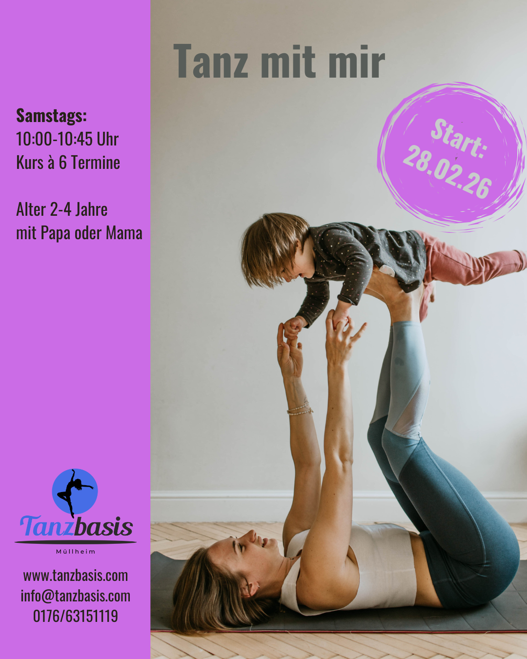 6-Wochenkurs "Tanz mit mir" (2-4J): 6x Samstags 10 Uhr, nächster Kursstart: 28.02.26